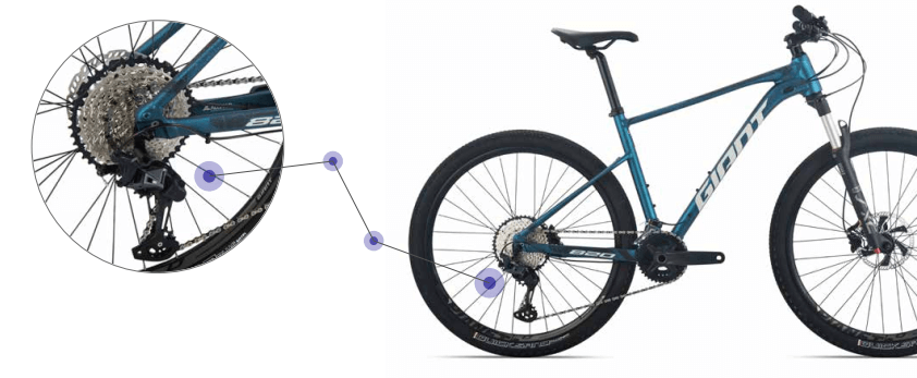 Ghi đông Giant Sports XC 31.8mm được chế tạo theo dạng tay ngang khá gọn gàng, hai bên hơi nhô cao giúp giảm bớt áp lực ở cổ tay và bàn tay, tay nắm mút nhẹ tăng cường độ ma sát và giảm chấn tự tin hơn khi đi băng đồng, bàn đạp hợp kim nhôm bản rộng đạp thoải mái hơn.